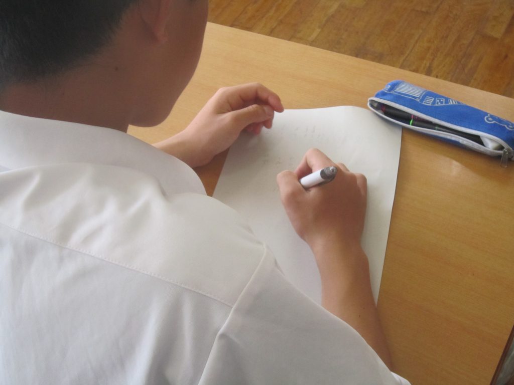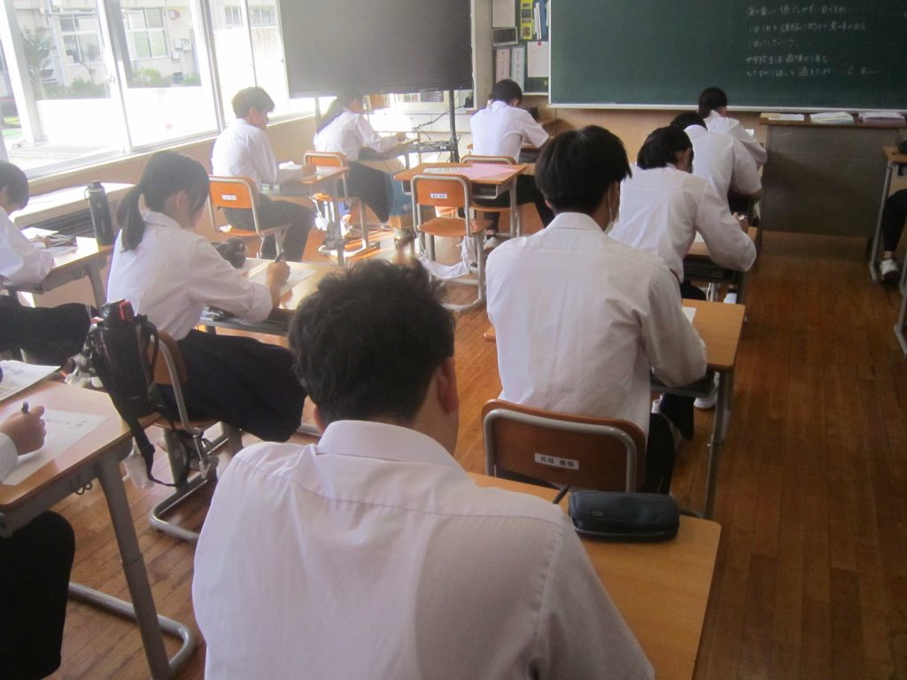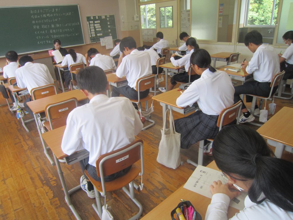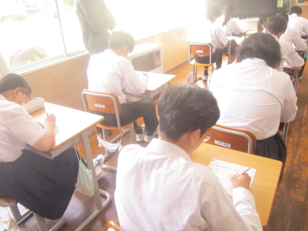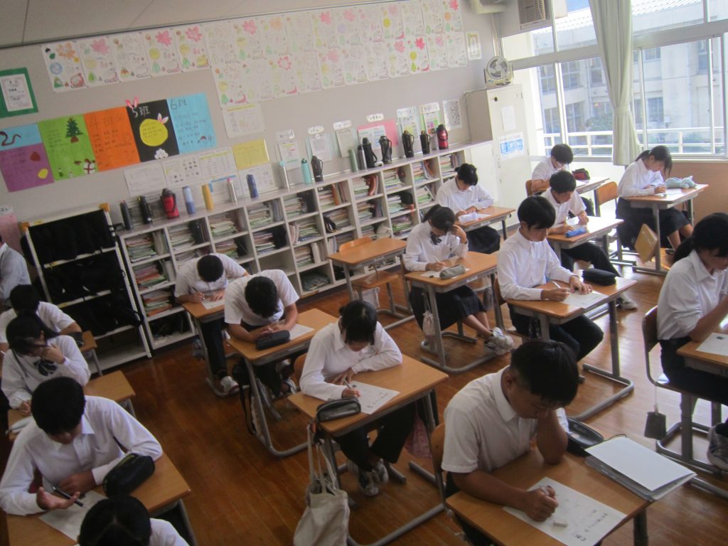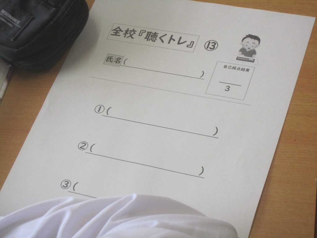 9月30日(火)、9月2日(火)以来の久しぶりの聴くトレを行いました。これで4月以降通算12回目ということになります。今日の聴くトレは、メモを取りながらの解答が許されましたので、各生徒は用紙の余白に必死にメモを取りながら放送に耳を澄ませていました。今日の問題の一部を紹介します。