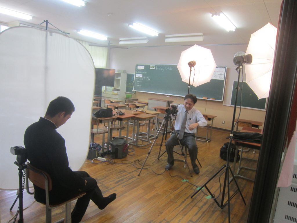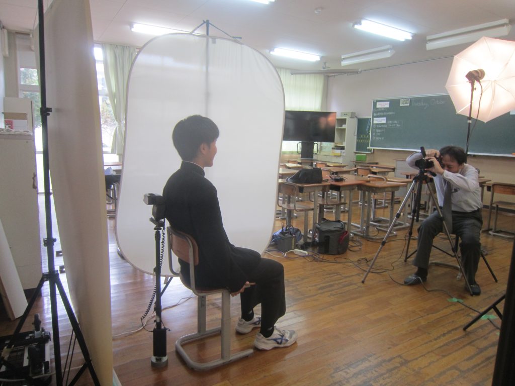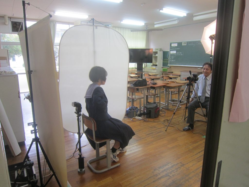 10月15日(水)、卒業アルバム用の写真撮影がありました。時のたつのは早いもので、3年生はいよいよ半年後に養父中学校を卒業します。3年間の思い出のつまった素晴らしい卒業アルバムになればと祈るばかりです。やや緊張した面持ちで撮影に臨む生徒の姿が印象に残りました。どうかあと半年、充実した日々を。