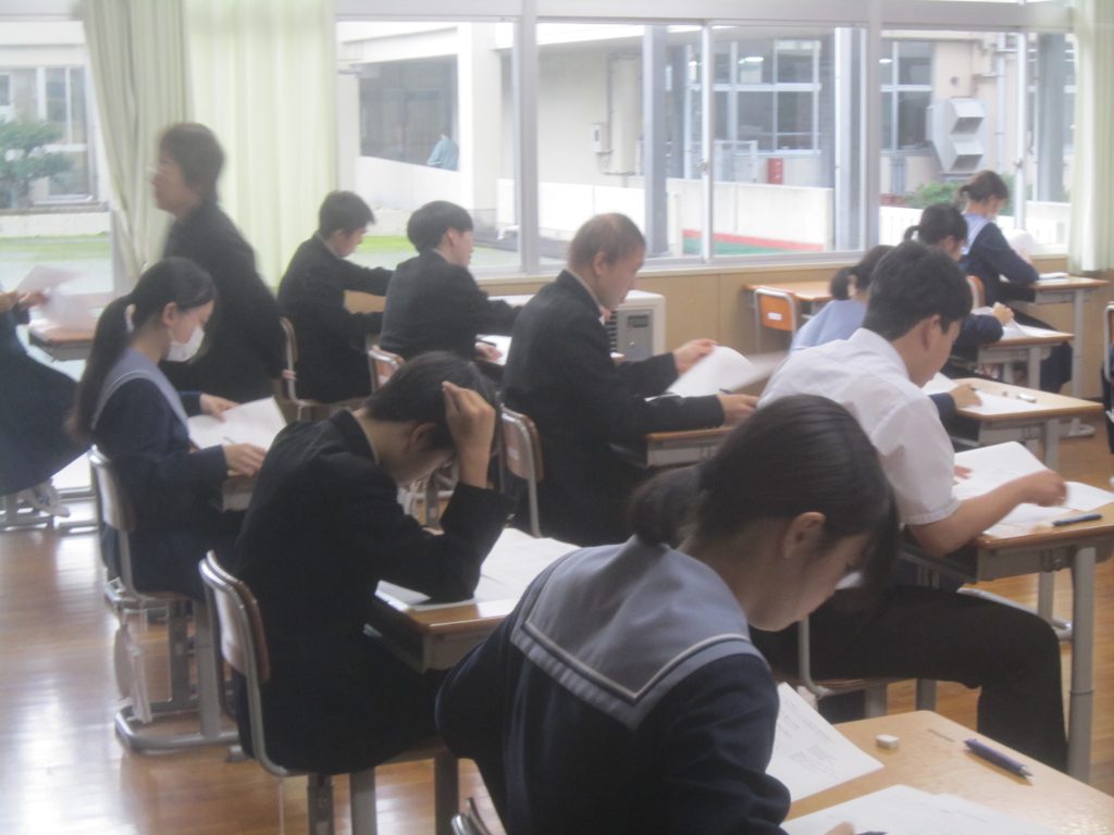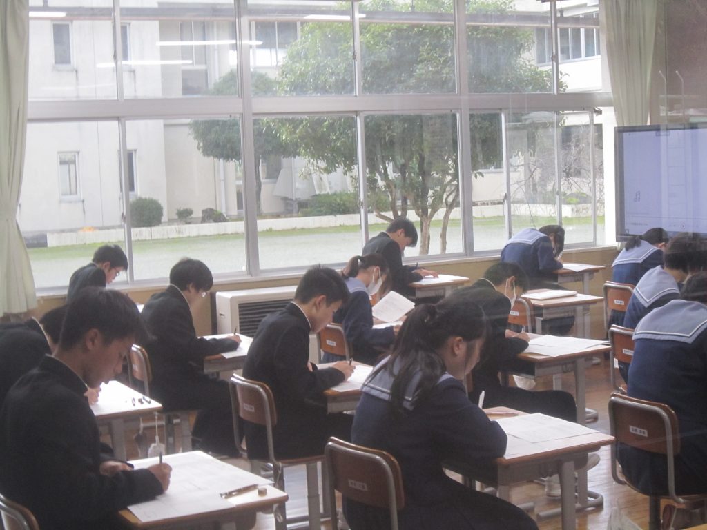 11月26日(水)は2学期の期末テスト1日目でした。2学期は体育大会や文化祭、また、やぶ・ふるさとキャリア教育や校内マラソン大会など行事がたくさんありましたが、通常の授業にもしっかりと取り組みました。その成果の一端を発揮しようとどの生徒も元気に登校し、テスト勉強に余念がありませんでした。テスト開始後は静まりかえった教室に鉛筆の音だけが響き、独特の緊張感が漂っていました。いつも言っていますが、誰の力も借りずに自分一人で50分間のテストに挑むことはたいへん苦しいことです。しかし、その積み重ねが確かな力に結びつきます。頑張ろう!養父中生!明日、明後日も期末テストが続きます。