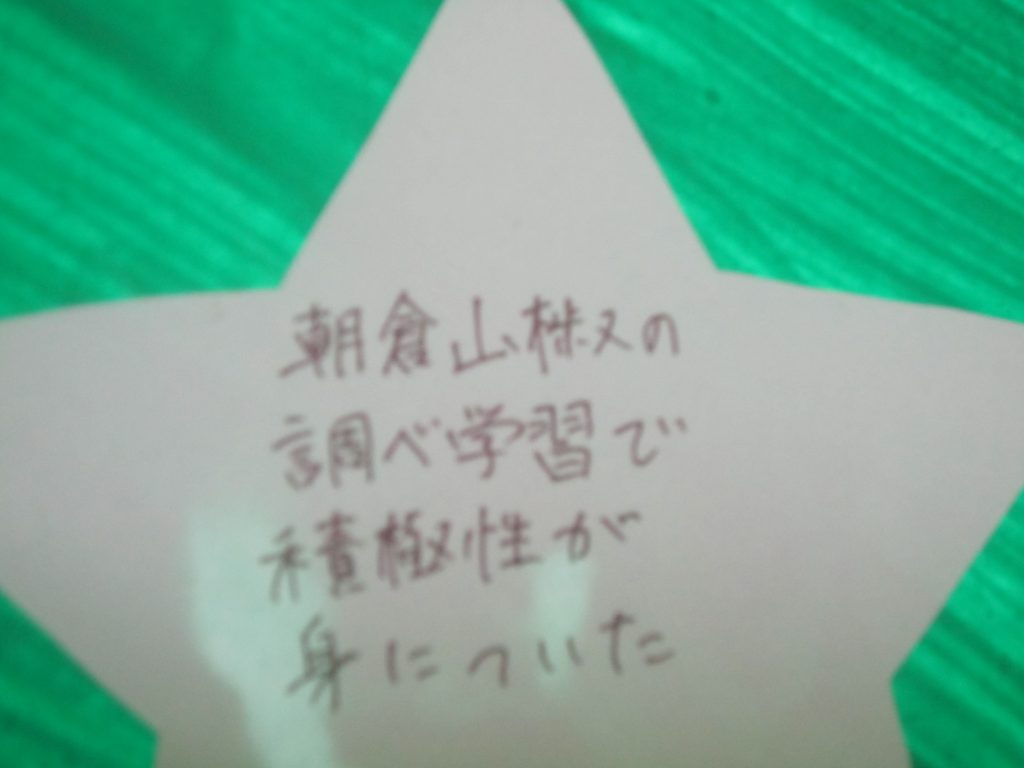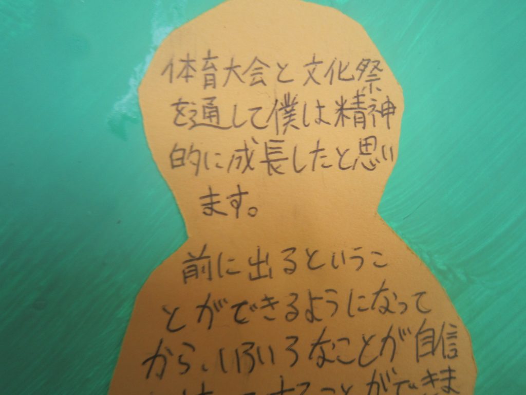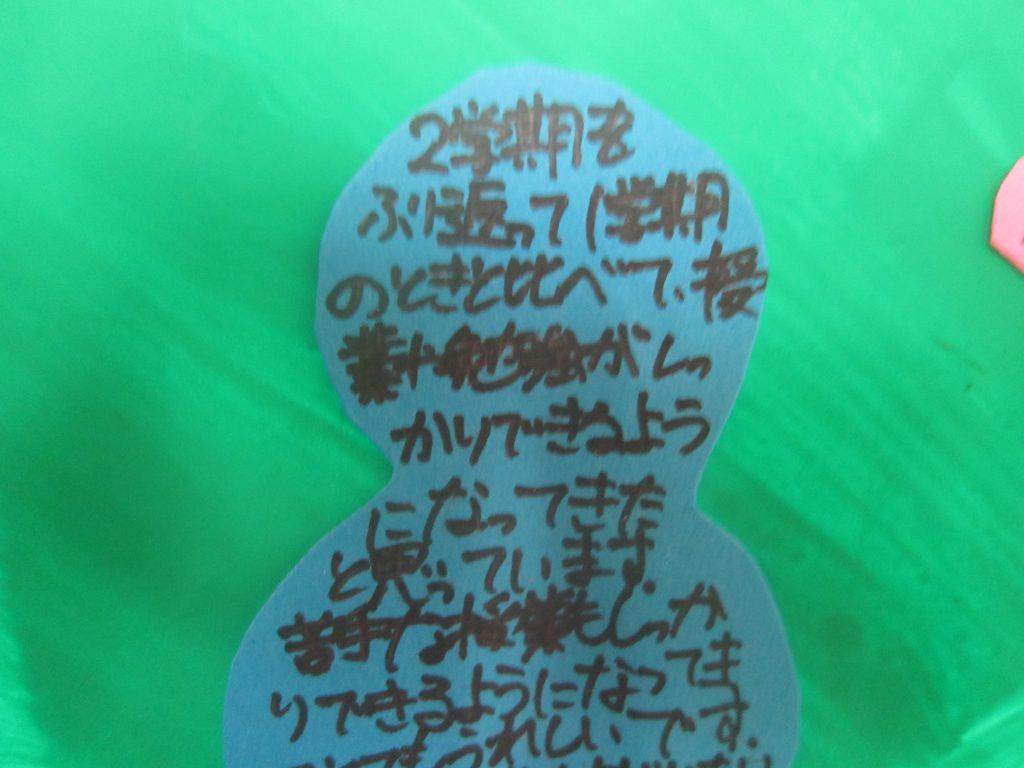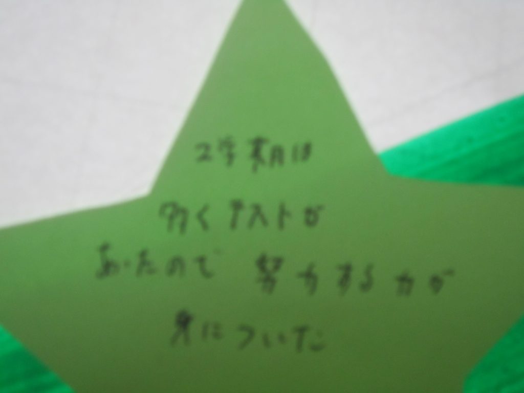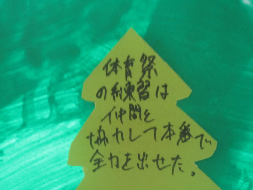 養父中学校の生徒玄関に巨大なクリスマスツリー絵画が登場しました。これは「ステップアップツリー」と呼ばれるもので、生徒会役員の面々が生徒会プロジェクトのために制作しました。この企画では、全校生がツリーの枝に2学期における自らの成長の跡を記すということのようで、すでにさまざまな言葉が貼り付けられていました。長かった2学期もあとわずかです。