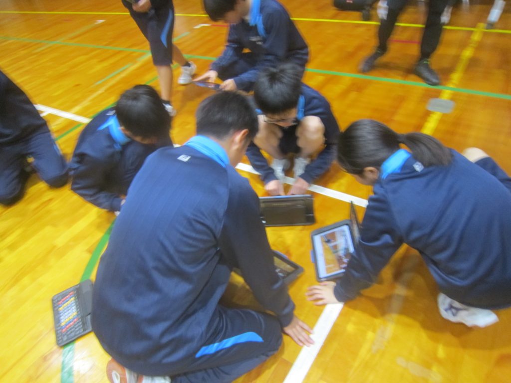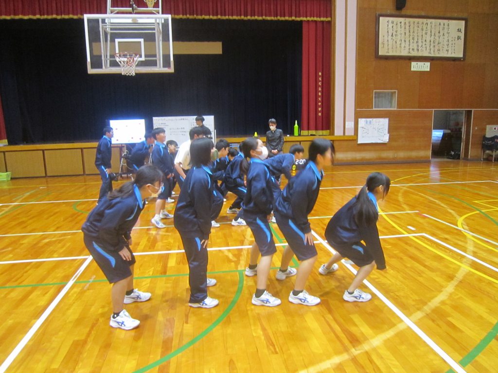 養父中学校では、「1人1授業」といって、年間に必ず最低一度は、自身の授業を他の教師へ公開し、同僚からの意見を聞くという校内研修を続けていることはこれまでのトピックスでも紹介しているところです。そんな中、12月19日(金)の4時間目、今春より養父中学校へ赴任した教員が2年1組で、保健体育「バスケットボール」の授業を公開しました。目標は、「レイアップシュートの正しいフォームについて理解することができる」と設定。電子黒板を用いながら丁寧に説明をしたり、生徒どうしでフォームについての改善点を話し合わせたりとさまざまな工夫を凝らした授業を展開しました。生徒たちも教員の投げかけによく対応し、意欲的にプレーしていました。ところで、体育館の外を眺めると心地よい晴天で、今シーズン最後の“小春日和”となりました。