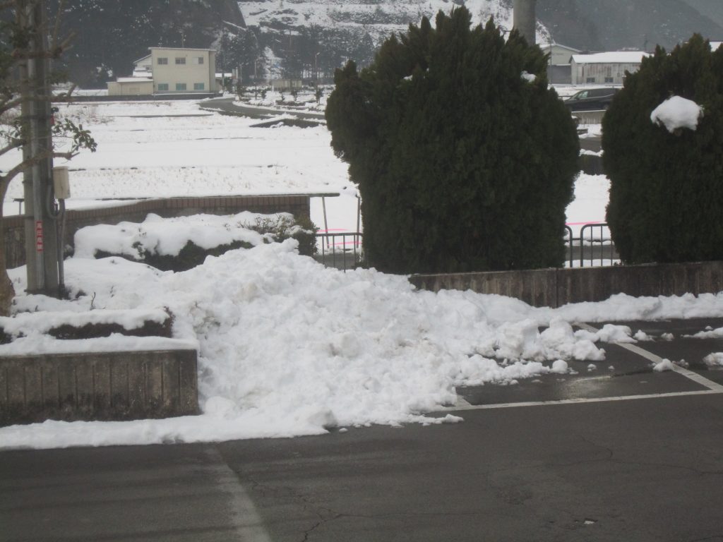3連休中の1月11日(日)から12日(月)にかけて、但馬地方はこの冬一番の大雪に見舞われました。養父中学校の校門付近や駐車場がどうなっているか不安になって確認に来てみたのですが、すでに雪が端に除けられていました。あとで分かったことですが、地元のある方が重機を使って除雪をしてくださったとのこと。このように学校は地域の皆様に支えられながら成り立っていることをあらためて感謝したいと思います。本当にありがとうございました。