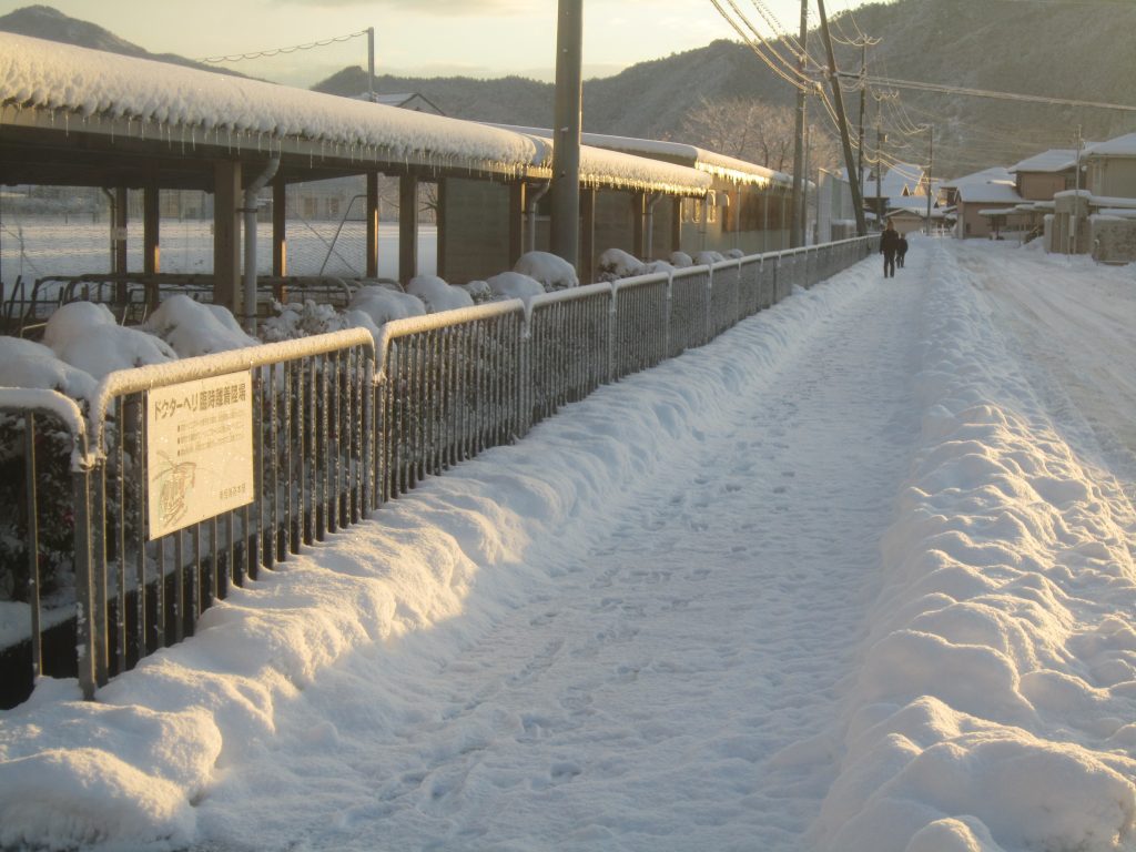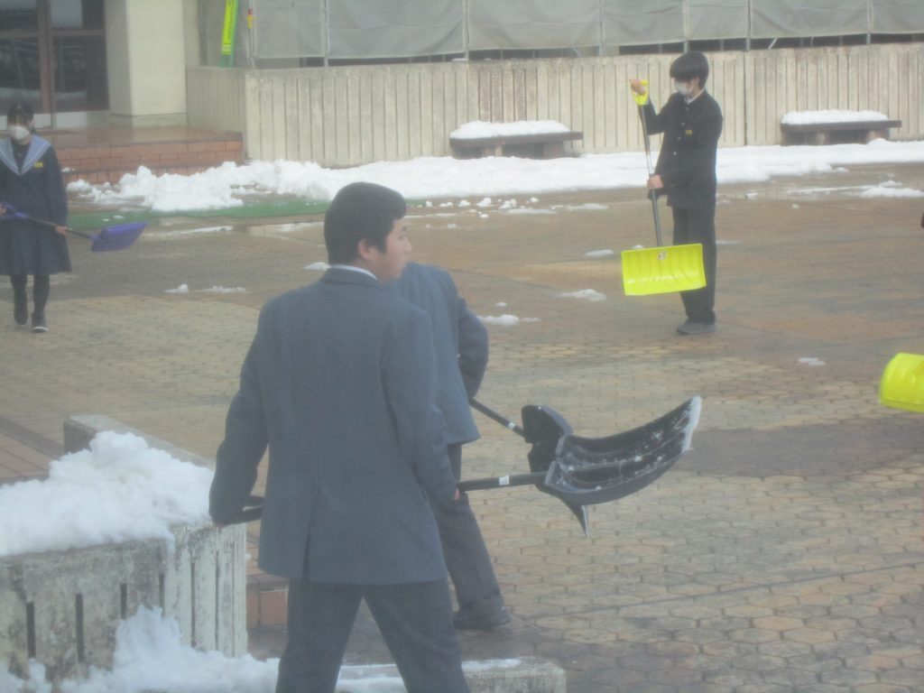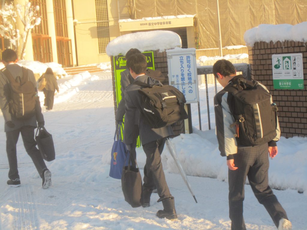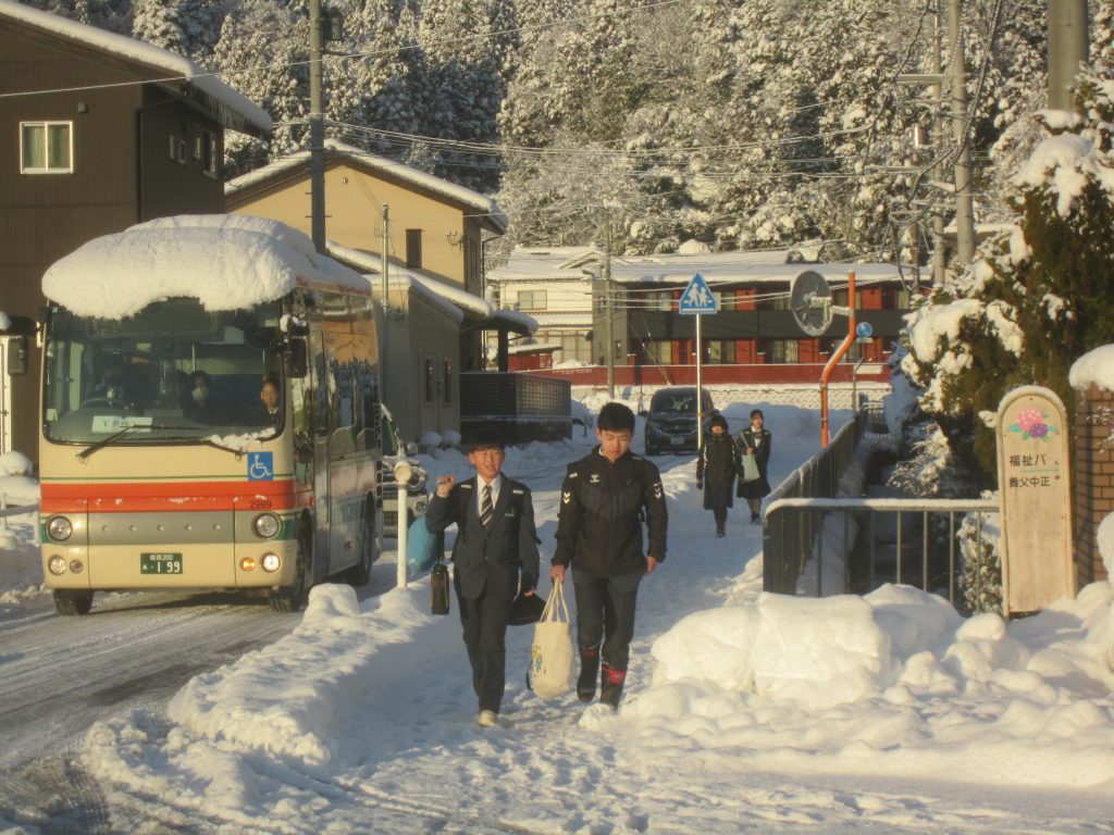 1月23日(金)、大雪警報が解除されて、生徒が養父中学校へ帰ってきましたが、多くが元気に登校してきてくれて嬉しく思いました。いっぽう、大雪に伴って校区内の道路状況が極めて悪くなり、スクールバスが迂回(経路変更)をしなくてはいけないケースが起こりました。そんな中、当該生徒保護者の皆様には登校支援をしていただき、生徒たちはなんとか学校へ来ることが出来ました。いっぽう、生徒の登校状況の把握や夕方の下校に向けたバス会社との折衝等で朝からてんやわんや。並行して教職員によるさらなる除雪を行うなど大雪関連の対応が今日も続きました。このような日々が続くと、雪の少ない兵庫県南部の暮らしを羨ましく思うことがあるのが正直な気持ちですが、雪国だからこそ忍耐強くて、かつ感性豊かな生徒が育つのだと自分たちに言い聞かせながら、そして、心の支えにしながら今後も教育活動にあたってまいります。