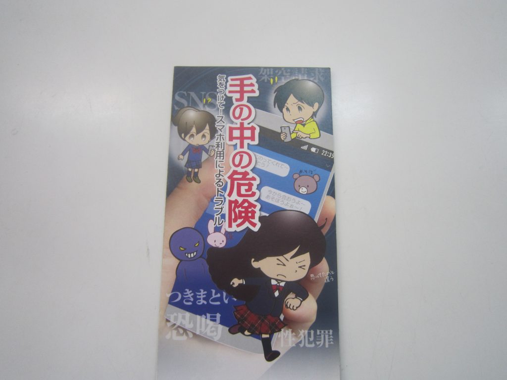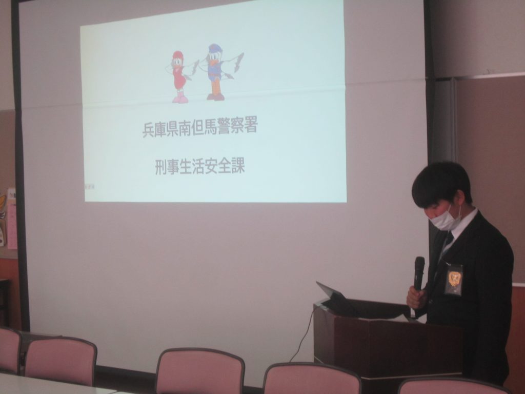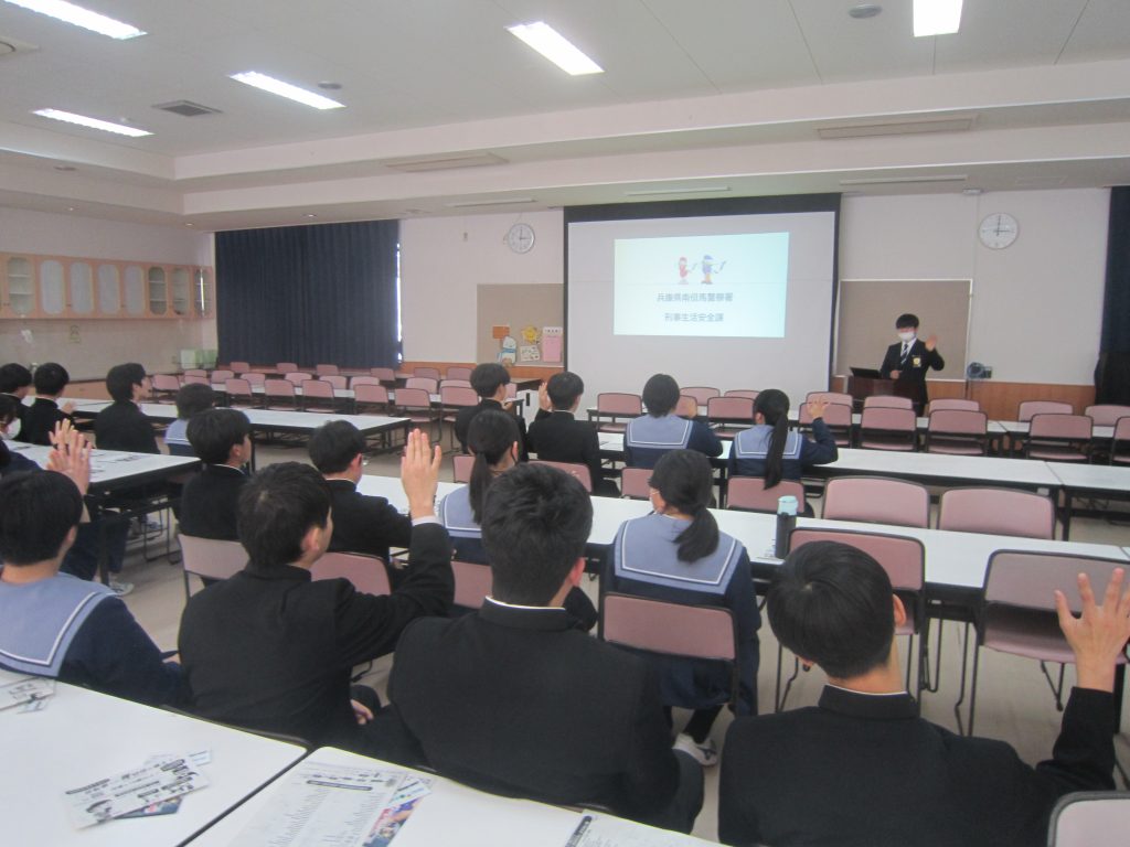 1月29日(木)、兵庫県警南但馬警察署交通課と同生活安全課より講師をお招きして、3年生を対象にした交通安全教室およびSNS教室を行いました。まず交通安全教室では自転車の運転における違反行為が厳罰化されたことなどについて説明がありました。つづくSNS教室ではオンラインゲームの危険性などについて注意喚起がありました。生徒たちはいずれも真剣に話を聞いていたように感じました。交通安全にしてもSNSにしても、各家庭の教育力が重要になってきますので、保護者の皆様による指導もよろしくお願いします。