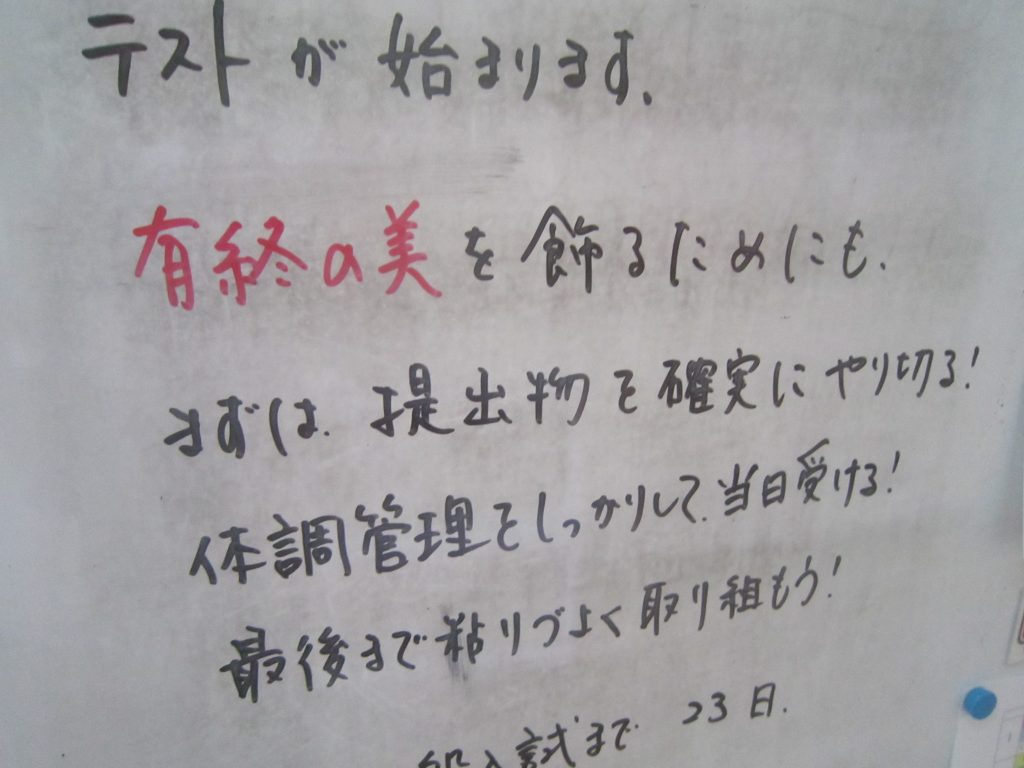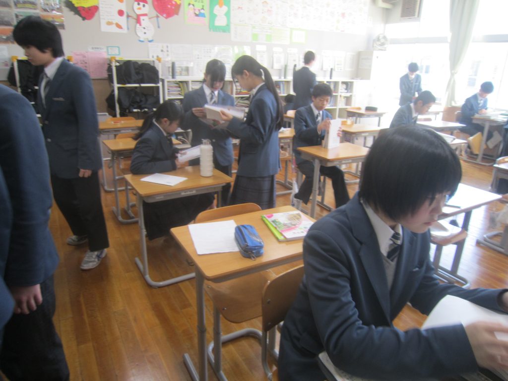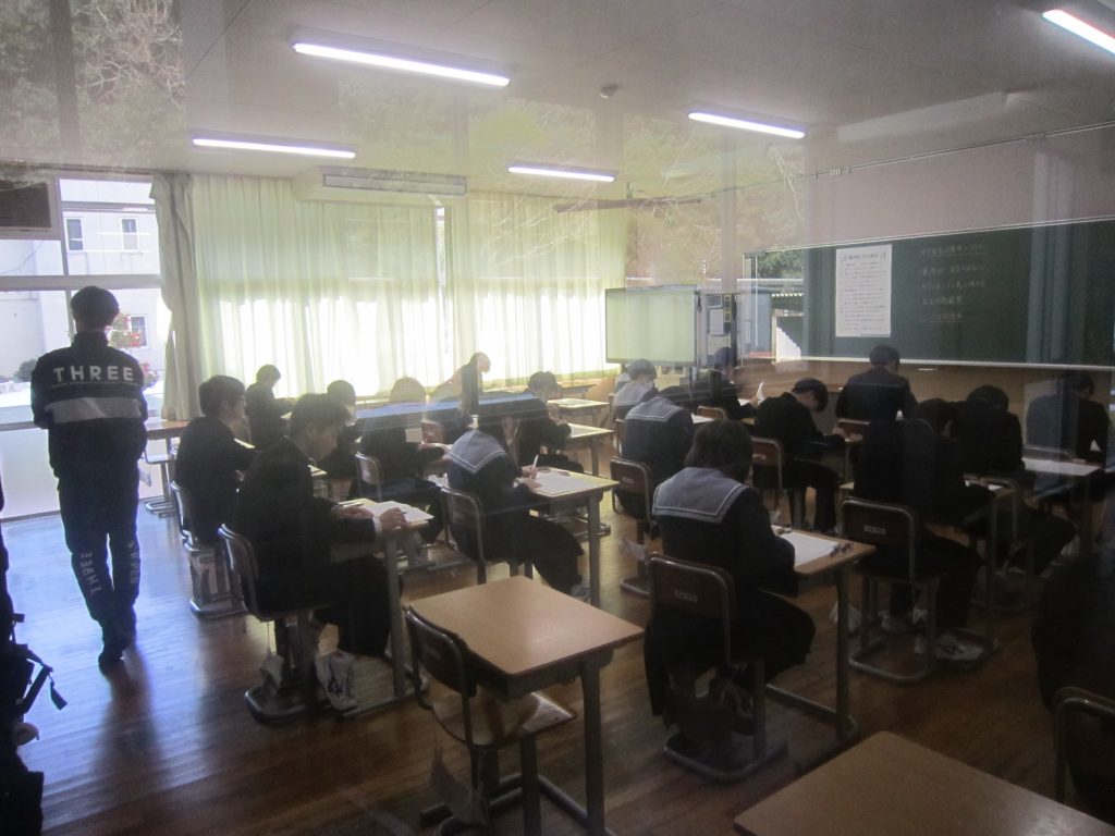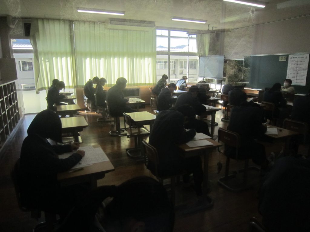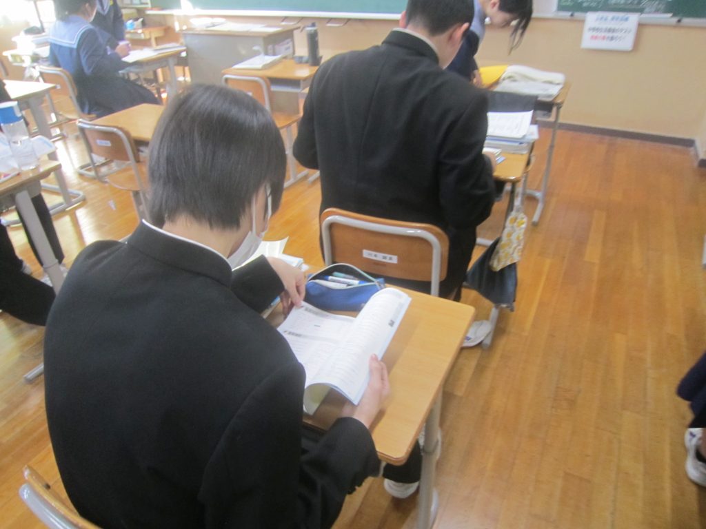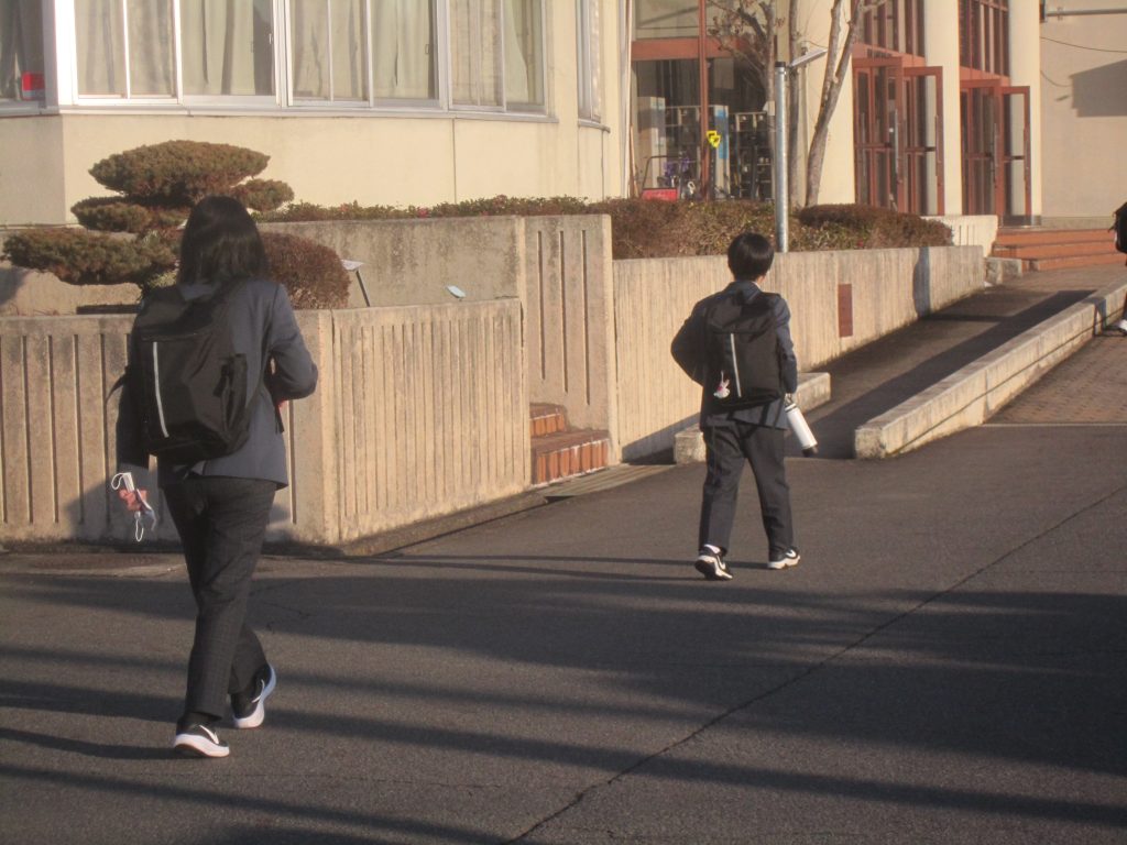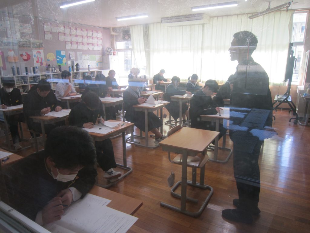 雪解けが進み、グラウンドの土は完全に見える状態になりました。校地内を見渡してみても、除けた雪を積んだ部分以外は地面が顔を出しています。今日は明るい日差しが差し込む爽やかな朝になりましたが、生徒たちにとっては学年末テストの1日目。各教室を覗くと、テスト勉強に励む生徒たちの姿があり、お互いに問題を出し合って答えを言い合うなど、テスト当日も“協働的な学び”を展開していました。しかしながら、中には個人で勉強に励む生徒たちもおり、こちらは“個別最適な学び”といったところでしょうか?いずれにしても、このテストを大切に考えている生徒がほとんどでした。そしていざ、テストが始まったらいつものように静寂の中に鉛筆の音が廊下まで響き渡り、歯を食いしばって頑張っているその横顔に、「最後まで諦めるなよー。」と心の中で叫ぶ自分が居ました。