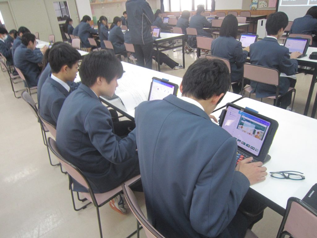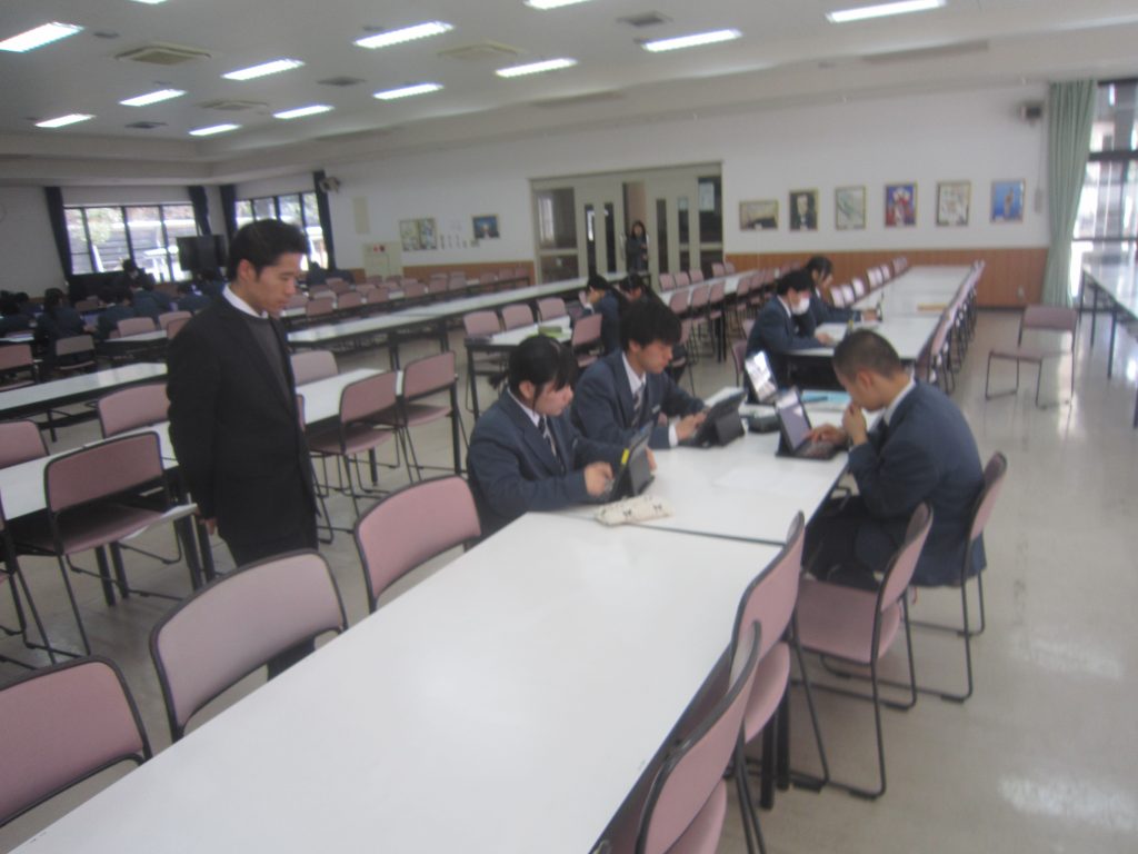 3日間に渡った学年末テストが終わり、天皇誕生日を含めた3連休も終わり、また日常の養父中学校の生活が戻ってきました。先週末の推薦合否結果発表の結果を報告に来てくれる3年生もたくさん居て、学校全体が明るいムードに包まれています。そんな中、2時間目にランチルームを覗くと、2年生が進路探究学習を進めていました。つづいて体育館に行ってみると、3年生が楽しそうに体育の授業を受けていました。さらに1年生フロアに行ってみると、両クラスともに道徳科の授業をしていました。いっぽう、駐車場に一部残っていた雪は、教職員がショベルを使って打ち砕いてくれて、午前中には完全に解けてなくなりました。2月が音を立てて“逃げて”いくような感じです。