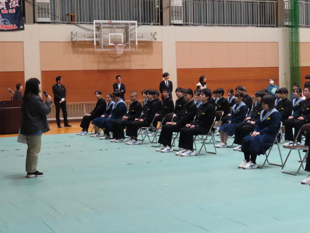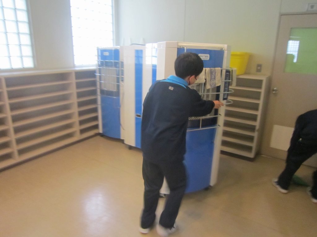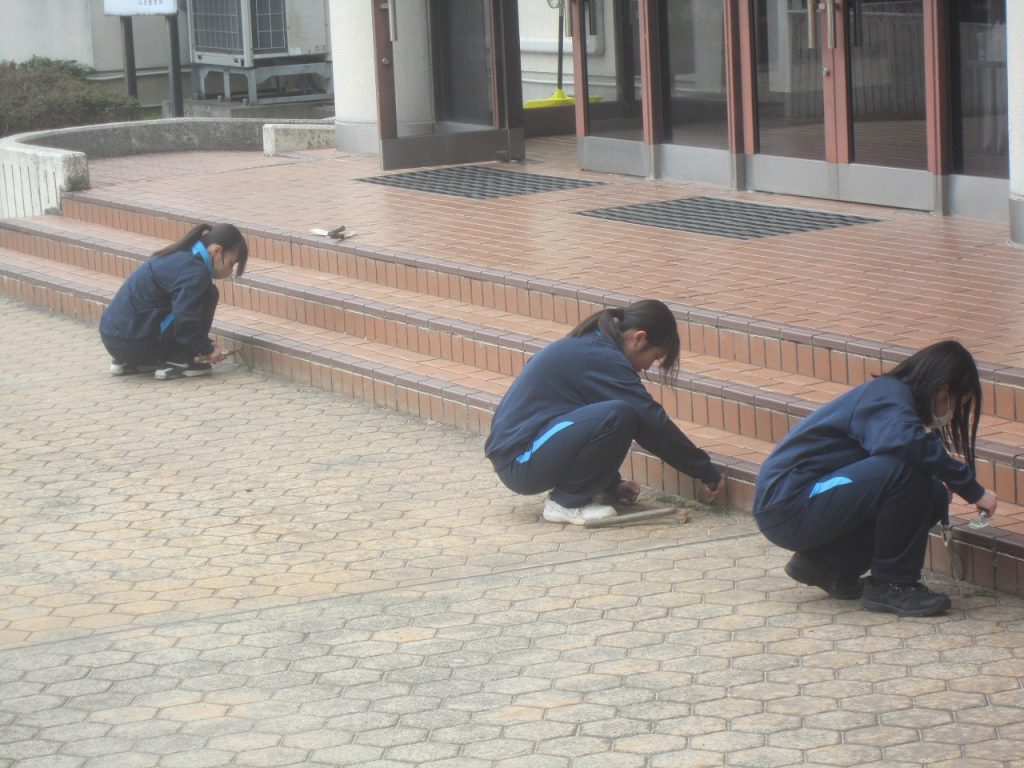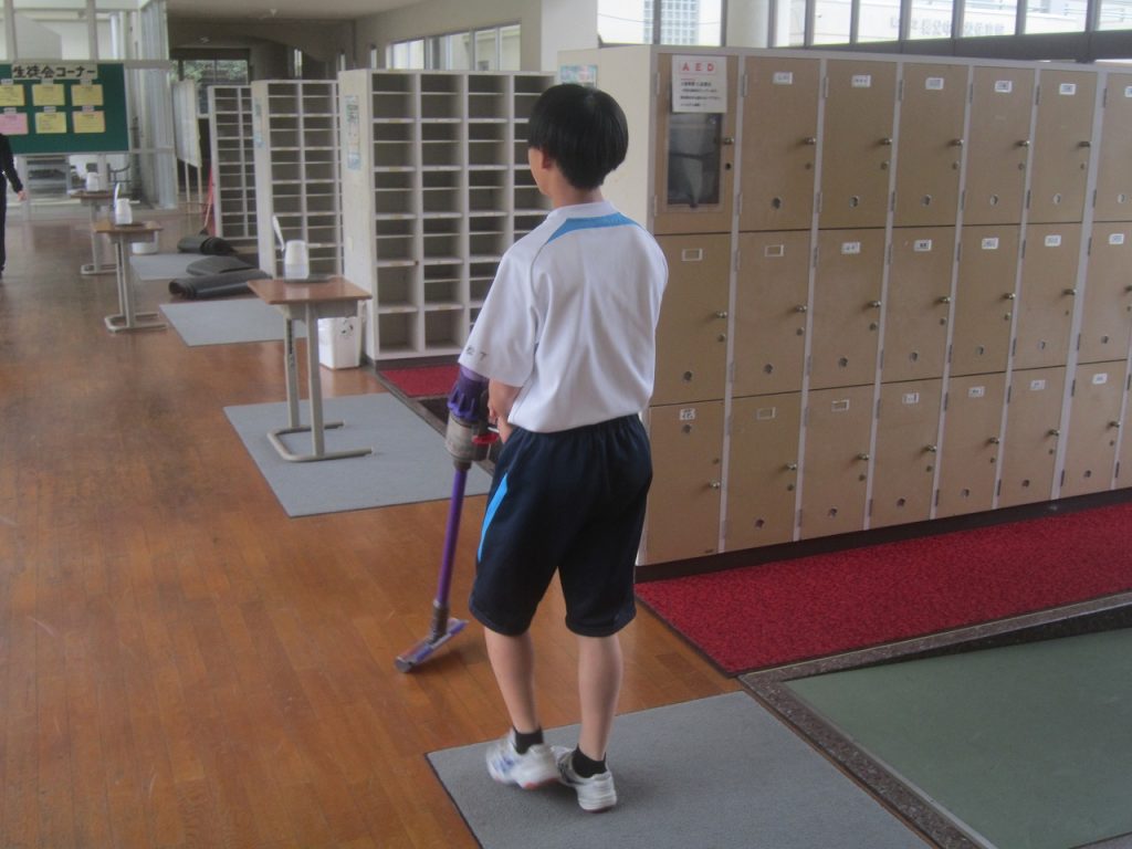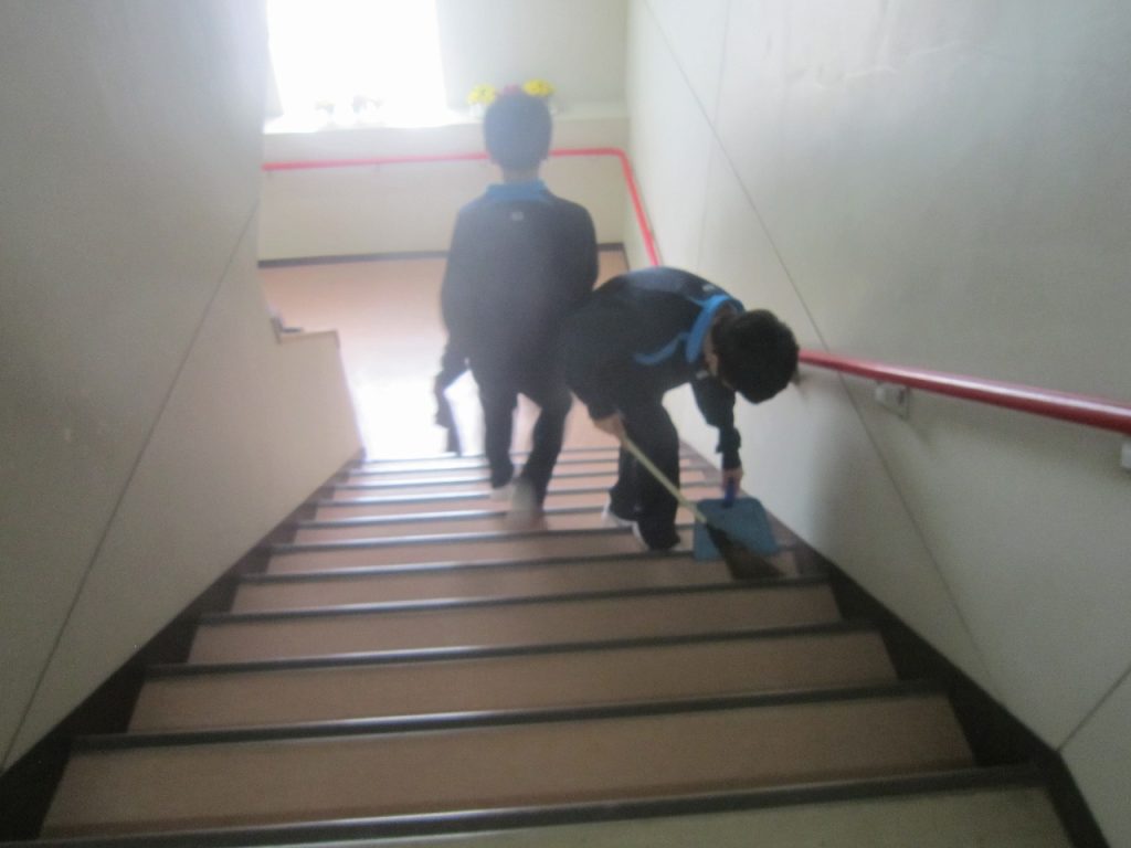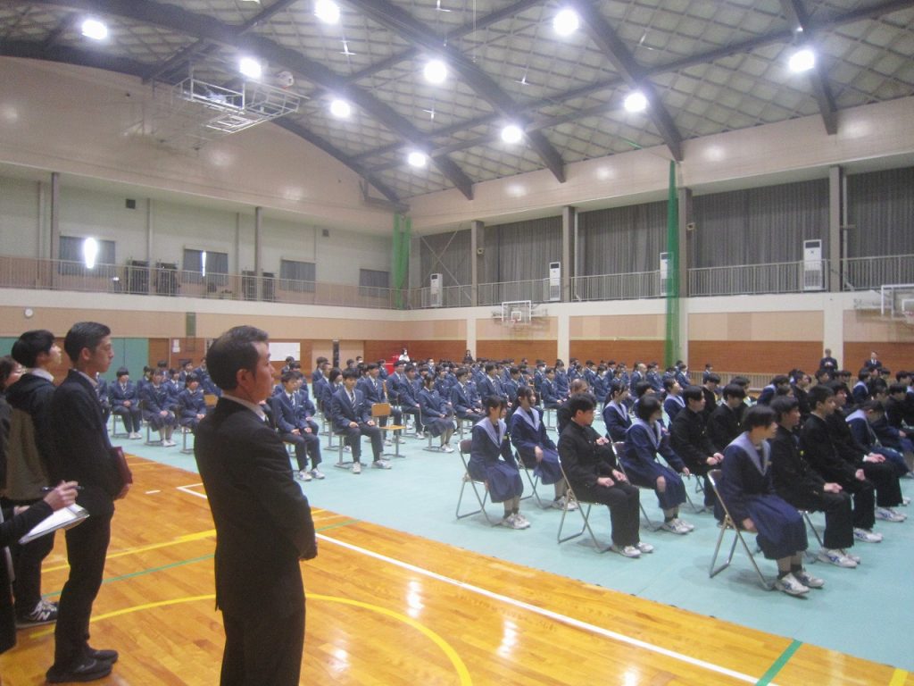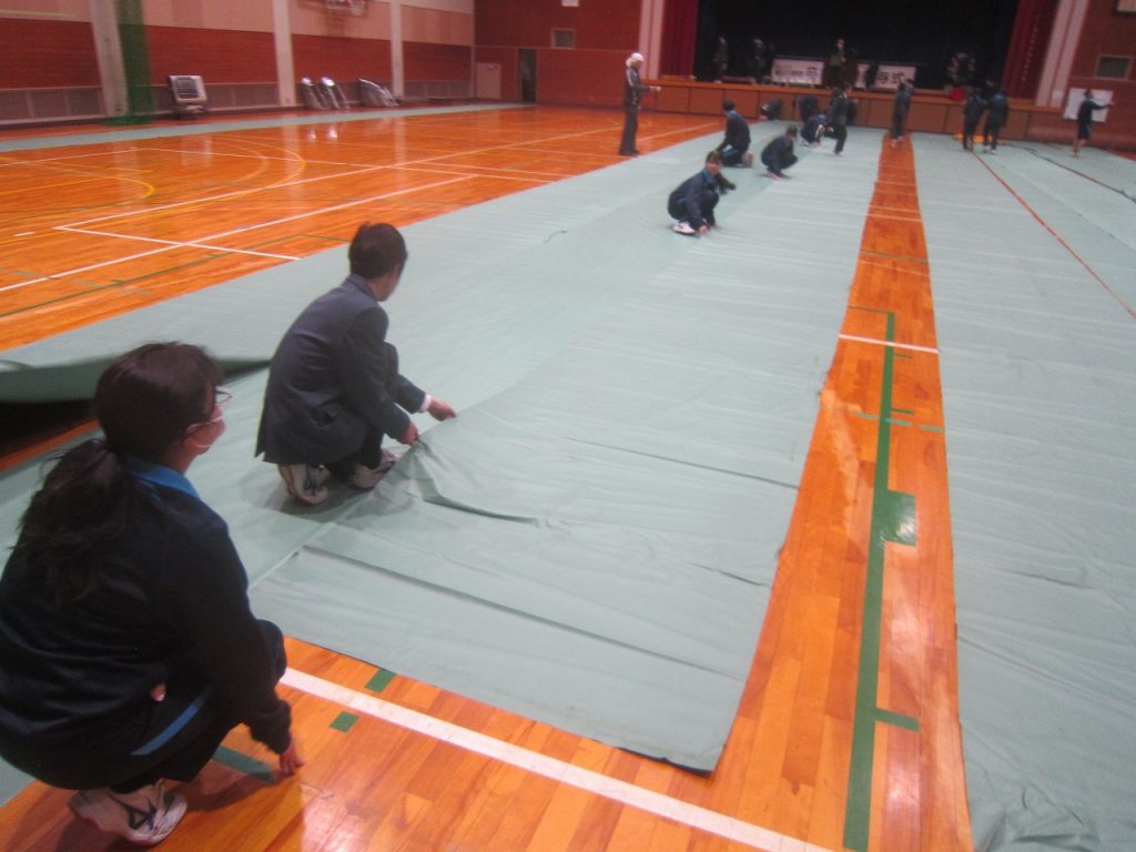 卒業式を翌日に控えた3月9日(月)、1・2年生全員で力を合わせて卒業式準備をしました。午前中の卒業式練習では3年生の凛とした態度が素晴らしかったですが、その後の1・2年生の準備の様子も素晴らしく、明日は立派な卒業式ができそうです。2年生が主に体育館の会場準備、1年生は主に校舎内外の美化の仕事を行いました。
