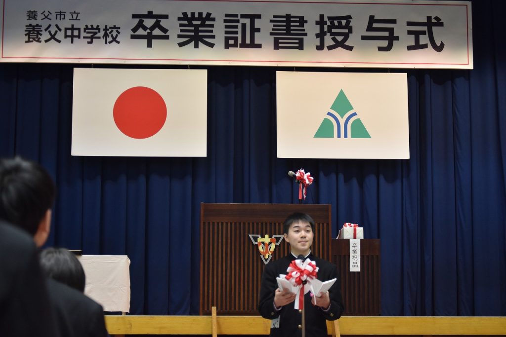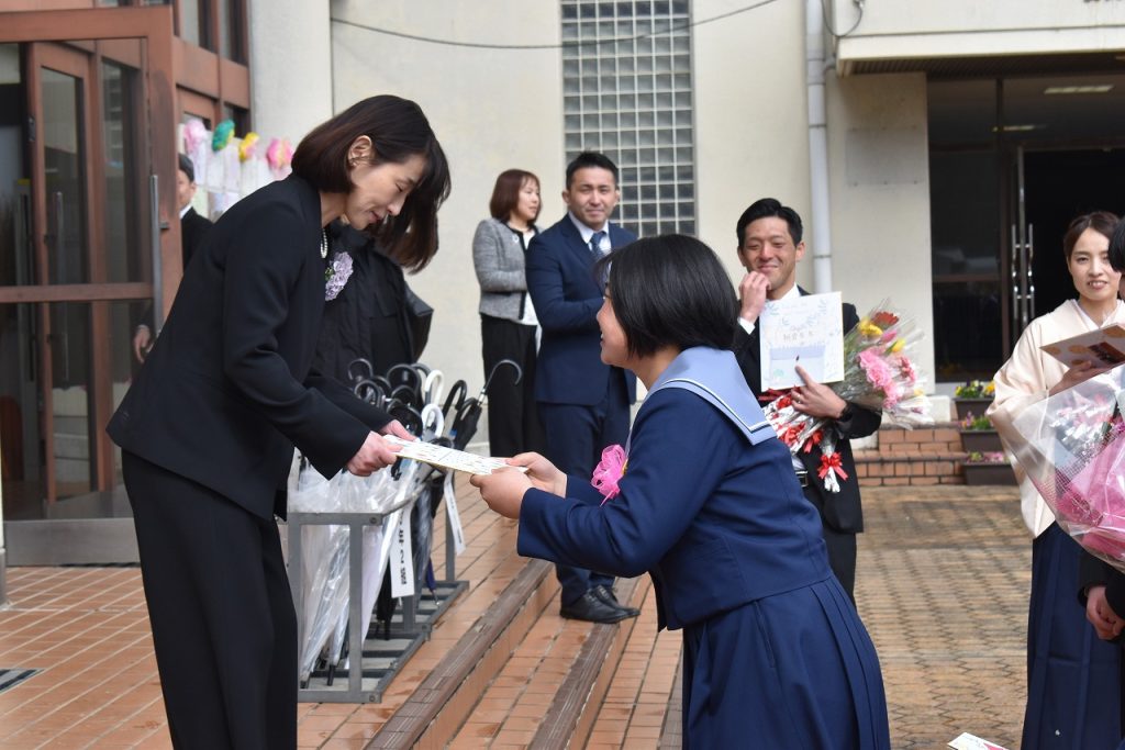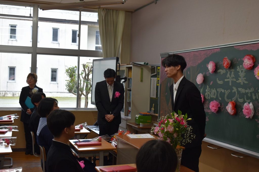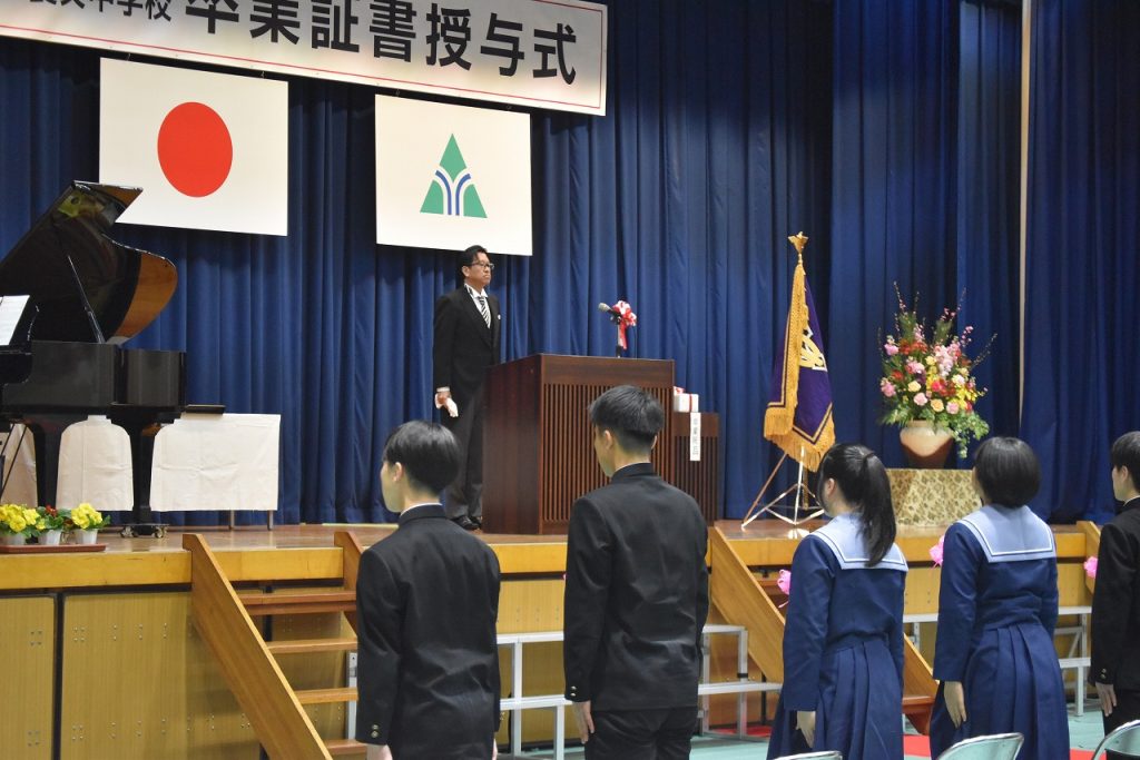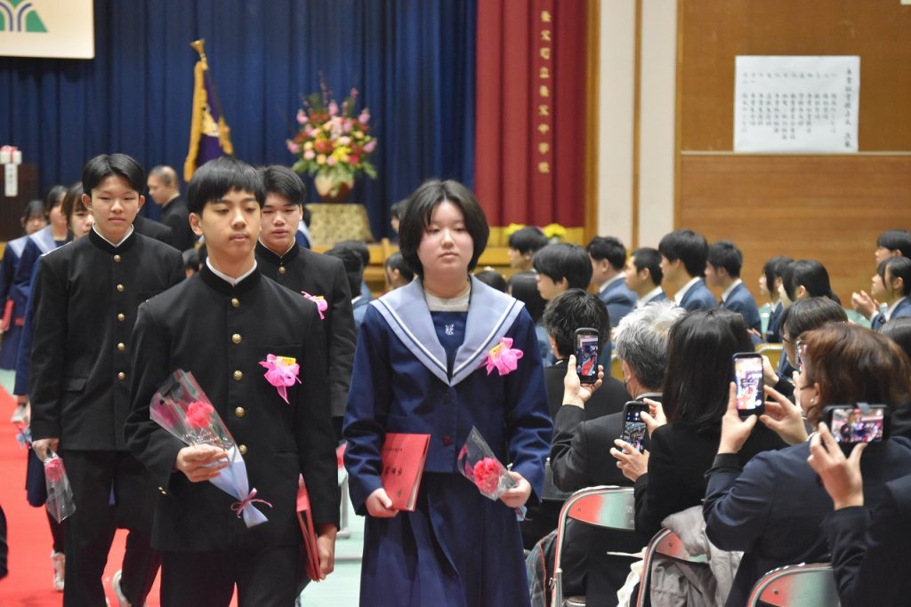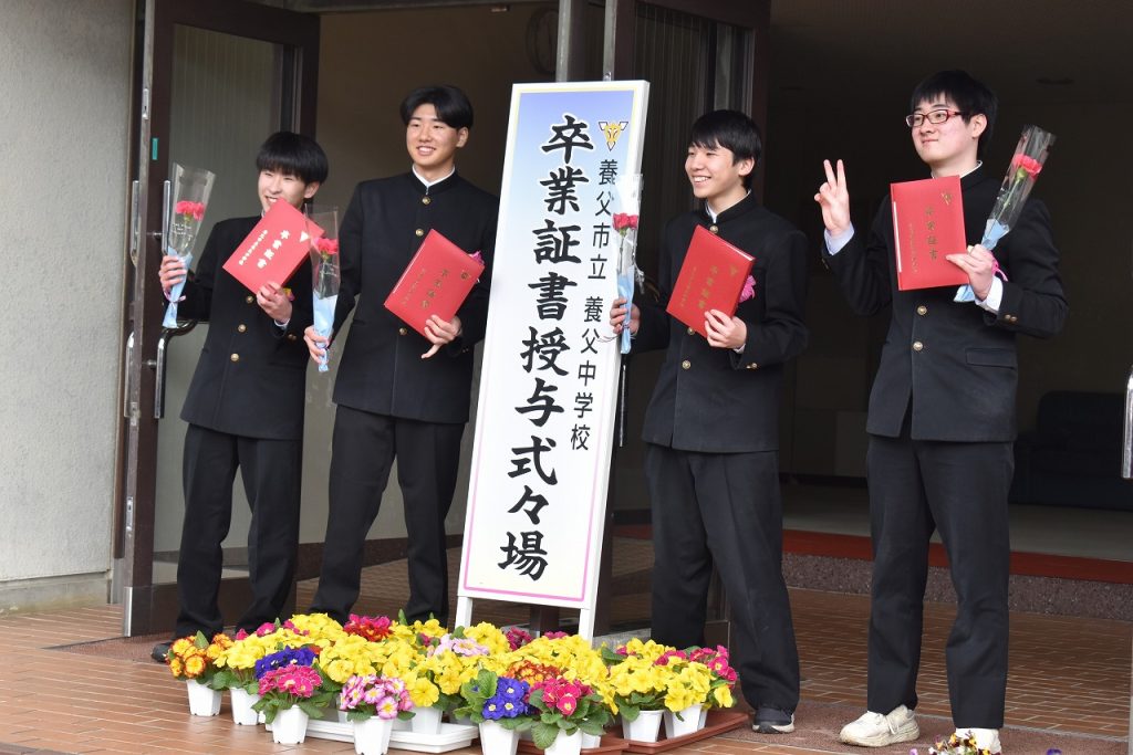 3月10日(火)、令和7年度第37回卒業証書授与式が行われ、大きな拍手を浴びながら、3年生生徒が思い出の詰まった養父中学校の学び舎を後にしました。57名の皆さん!卒業おめでとうございます!また、会える日を楽しみに!どうか、どうかお元気で!