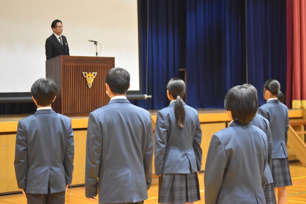 3月24日(火)、ついに令和7年度修了式の日を迎えました。まずは、1・2年生全員に修了証の授与を行い、その後の学校長式辞(学校だより「須留が峰第42号」参照)では、巣立っていった卒業生の足跡に加えて、すべての生徒が無事に進路実現を果たしたことを伝えました。また、校訓「自立・協同・創造」の言葉をもとに、全教職員と全校生が自らの令和7年度を振り返る時間を設けました。どの教職員も生徒も成果があり、またいっぽうで課題もあった1年間であったようです。令和8年度が順調な船出になればよいと思いました。修了式後は生徒指導担当教員が次年度に向けた心構えについて講話し、「令和8年度に向けた準備をしっかりとする春休みにしよう。最初が肝心!」という言葉が印象に残りました。令和8年度は4月8日(水)が始業式です。