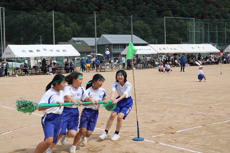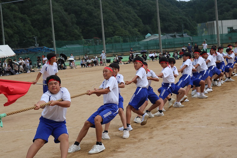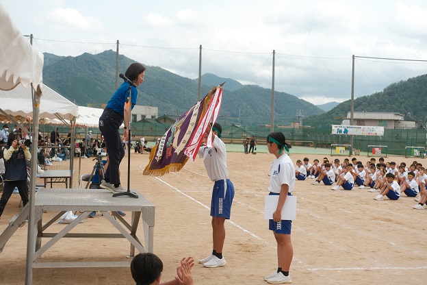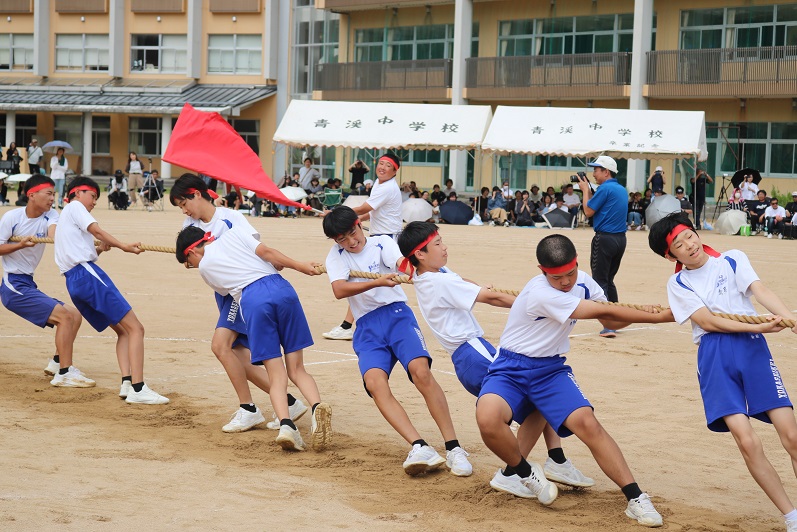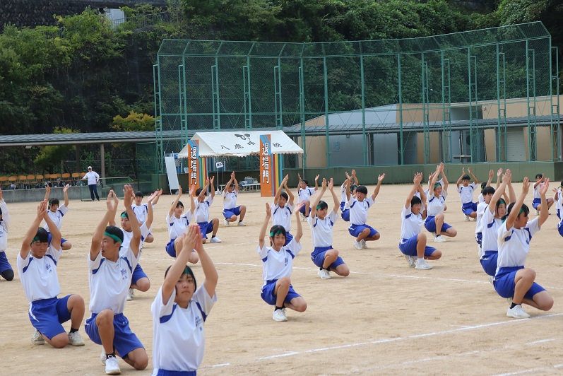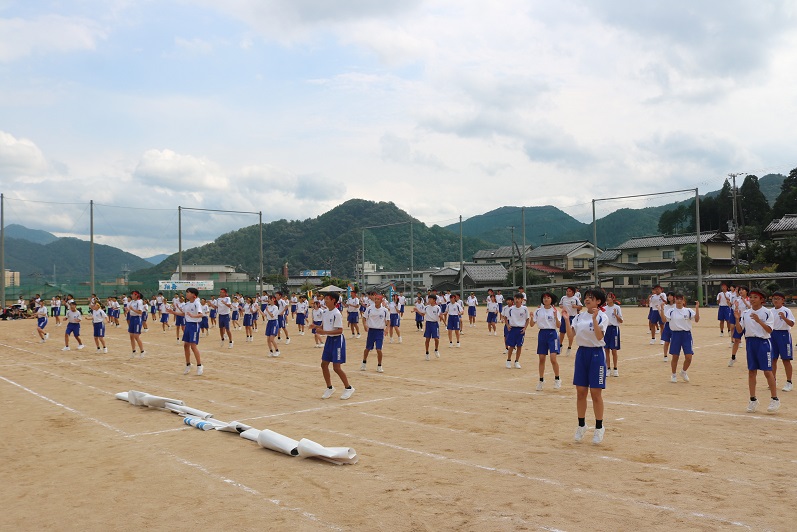 9月20日(土)、好天のなか体育祭が開催され、生徒たちは元気いっぱい競技に臨みました。どの種目にも全力で取り組み、仲間を応援する姿が印象的でした。閉会式では、皆が達成感に満ちた笑顔を見せてくれました。特に3年生がリーダーシップを発揮し、1・2年生を力強く引っ張る姿は頼もしく、学年を越えた絆を感じる一日となりました。生徒一人ひとりの成長が光る、素晴らしい体育祭でした。
