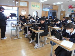 2月3日(火)・4日(水)に1年が調理実習で「豚汁づくり」に挑戦しました。続く2月10日(火)・13日(金)には「イワシの蒲焼き」に取り組みました。包丁の使い方や火加減に気を配りながら、班で協力して調理を進める姿がとても印象的でした。イワシの手開きには少し苦戦していたようですが、どの班も工夫しながら作業を進め、予定よりも早く調理を終えることができました。完成した料理はどれも美味しくでき、生徒たちは「おいしい!」と笑顔で食べていました。家庭科の学習を通して、食の大切さや仲間と協力する楽しさを実感できたようです。