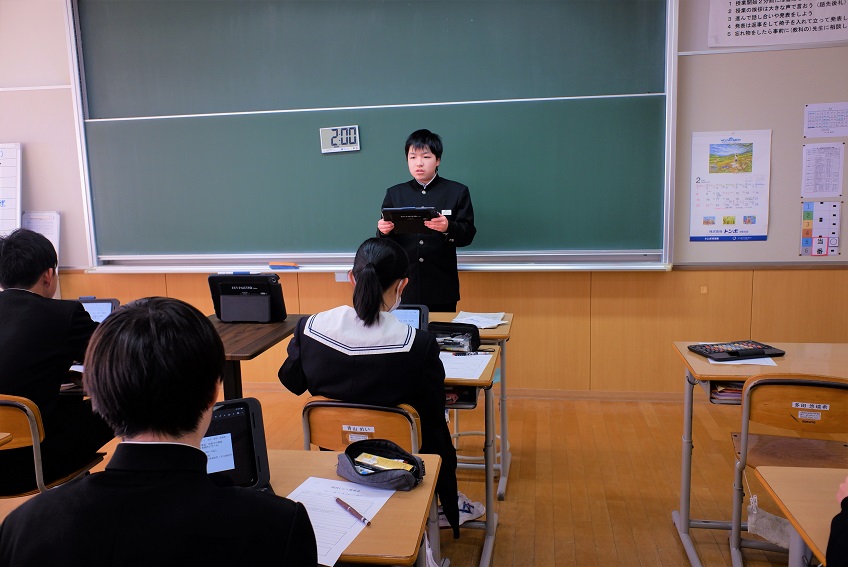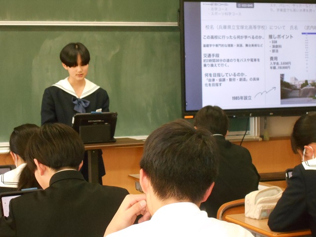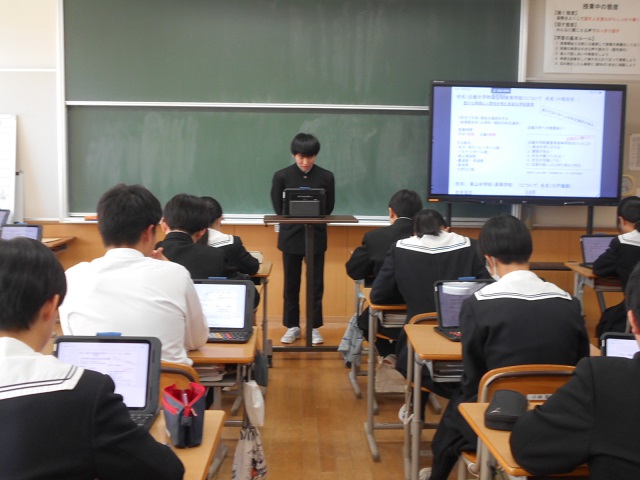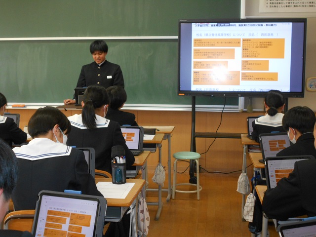 2月17日(火)、2年生が「高校調べ発表会」を行いました。自分が調べた高校について、分かりやすいスライドを作成し、聞き手に伝わるように工夫を凝らして発表しました。発表を通して、さまざまな高校の特色や魅力を知ることができ、来年度の進路選択に向けての意識が高まる貴重な機会となりました。