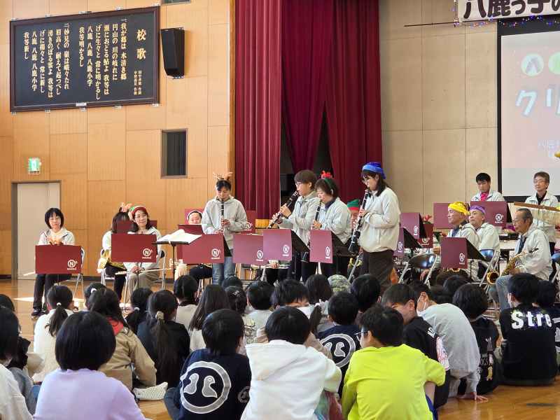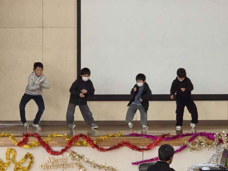 12月6日は、八鹿自治協議会の皆様が企画してくださったクリスマス会が八鹿小学校の体育館を会場に行われました。南但吹奏楽団の皆様の演奏で楽しい会が始まりました。会を盛り上げてくれたのは、子どもたちのダンスや踊り、バスケットボールのパフォーマンスでした。楽しいゲームや、サンタさんからのプレゼントもあり、楽しいひとときを過ごさせていただきました。ありがとうございました。