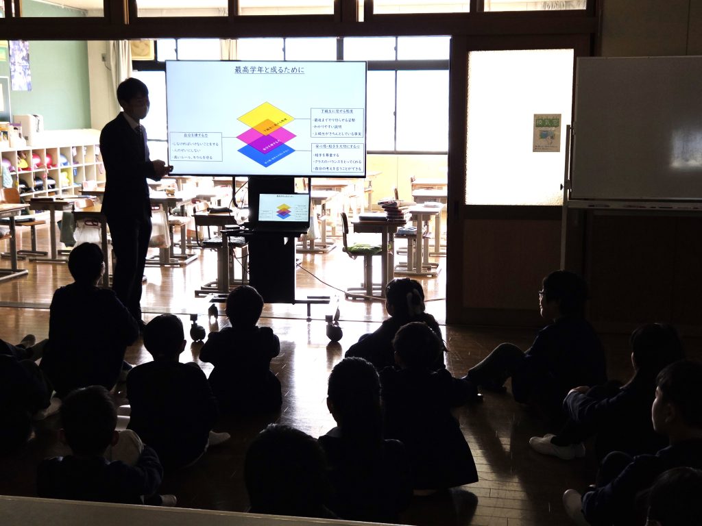 2026年は、自分たちが八鹿小のリーダーとなって引っ張っていく番です。頭では分かっていても、なかなかすぐに行動に移していくのは難しいものです。5年生の先生方から「最高学年に成るために」必要な心・力・態度・姿勢について話を聴きました。背筋の引き締まった様子を感じました。頑張れ!5年生!!