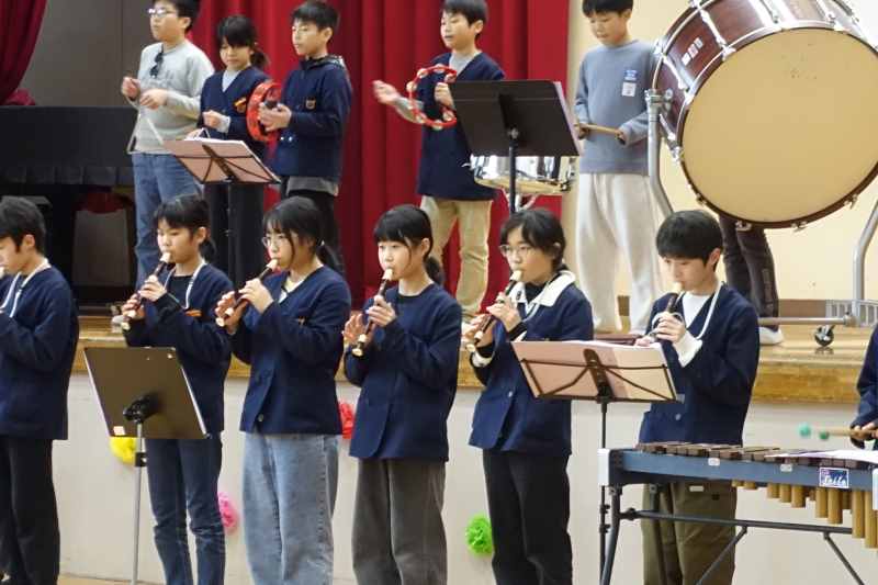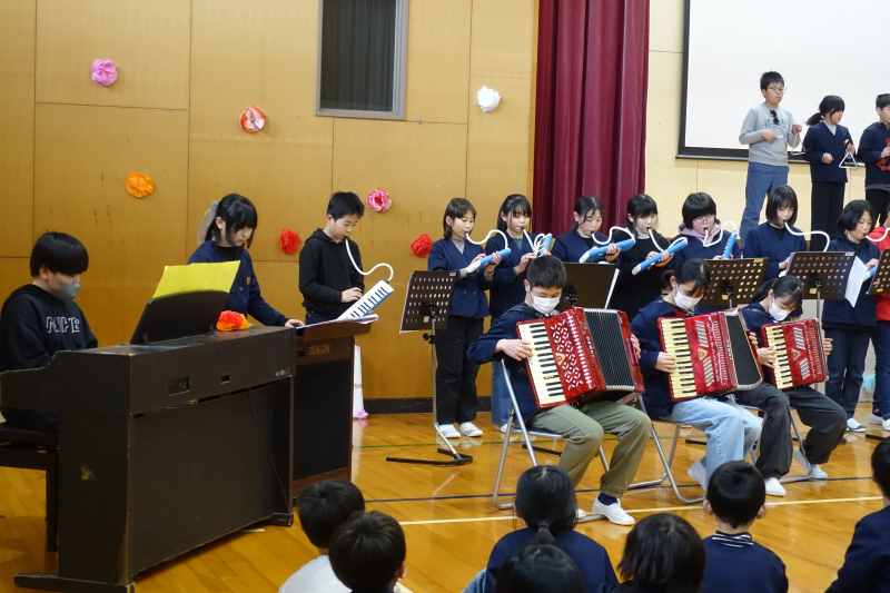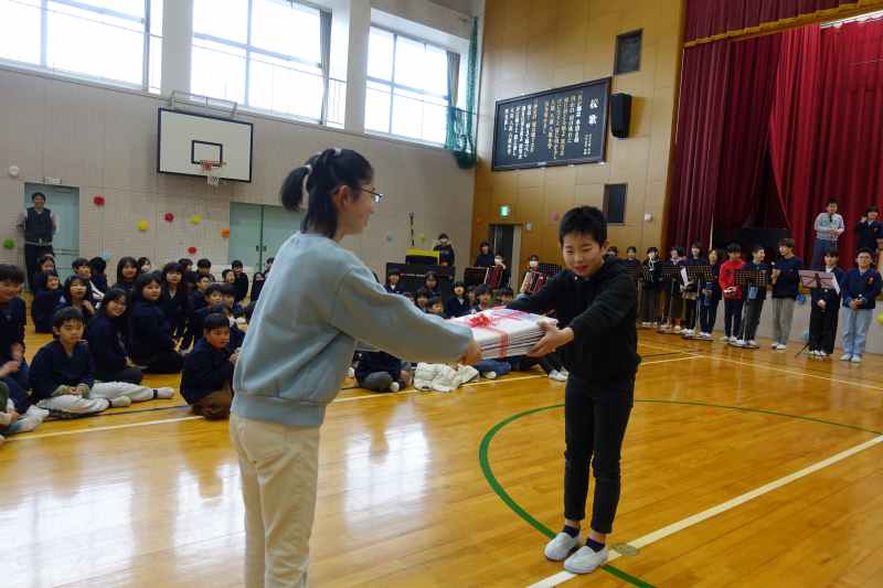 6年生への感謝とお祝いの気持ちを伝えるために、5年生が中心となって企画・運営をしてくれました。全校生で遊ぶゲーム、6年生への寄せ書きのプレゼント。心を込めて6年生に「ありがとう」の心を伝えました。それをしっかりと受け止めた6年生の態度もさわやかで、さすが6年生だと思いました。そして6年生から全校生にお礼の気持ちをこめた「ライラック」の演奏が贈られました。5年生にとっては、初めての大きな行事である「6年生を送る会」。次のリーダーを担う5年生のがんばりをとても頼もしく思いました。