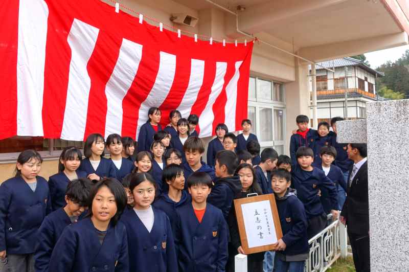 3月6日(金)、広瀨栄同窓会長をはじめ、同窓会役員の皆様にお越しいただき、6年生36名の「立志の書収納式」が執り行われました。 体育館では、厳粛な雰囲気の中、6年生代表が「誓いの言葉(巣立ちの決意)」を述べるとともに、桐箱に入れられた「立志の書(20歳の自分に宛てた手紙)」の授受が行われました。