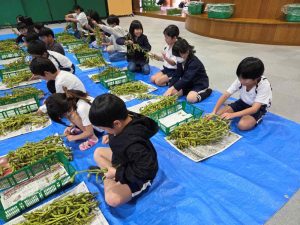 10月28日に、2年生が給食センターから運ばれてきた枝豆とりをしました。収穫されたばかりの枝豆の枝からさやをとるのは少しコツがいったようですが、すぐに手際よくとれるようになり、短時間でとり切りました。八鹿の子どもたちがと […]